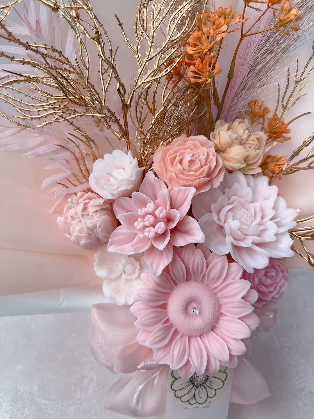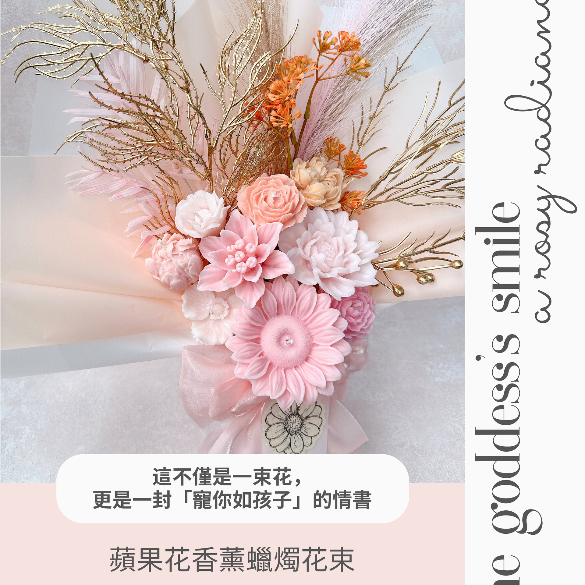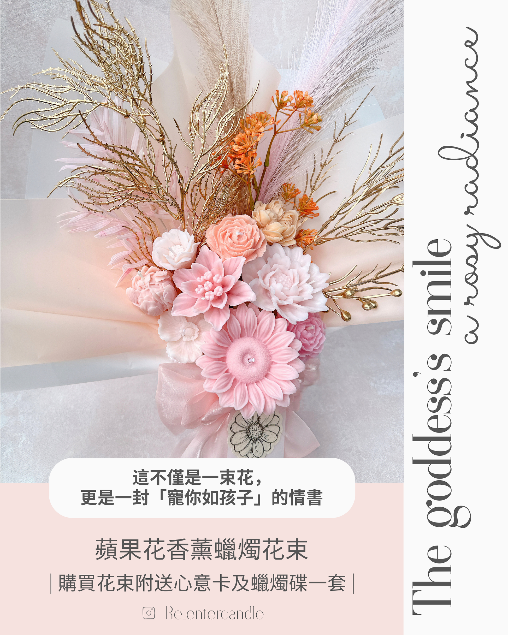 · 清新花香調與粉質香調的結合· 香氣特質與情感:這是一個純真、浪漫且充滿幸福感的組合。蘋果花與鈴蘭都帶有清新、嬌嫩且極度女性化的花香,象徵著純潔與幸福;玫瑰增添了經典的浪漫氣息;白麝香則作為基底,讓所有花香變得柔和、貼膚且朦朧。聞起來就像一場純白色的婚禮,充滿愛與祝福。· 全手工製作 ,純天然大豆蠟· 以粉色系為主 ,純潔浪漫的誓言· 附送心意卡 + 蠟燭碟 + 包裝盒· 可加購 $80展示盒 40cm x 25cm x 45cm