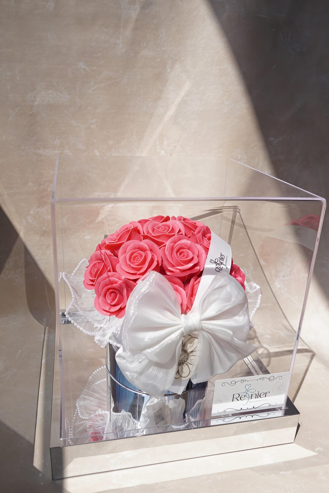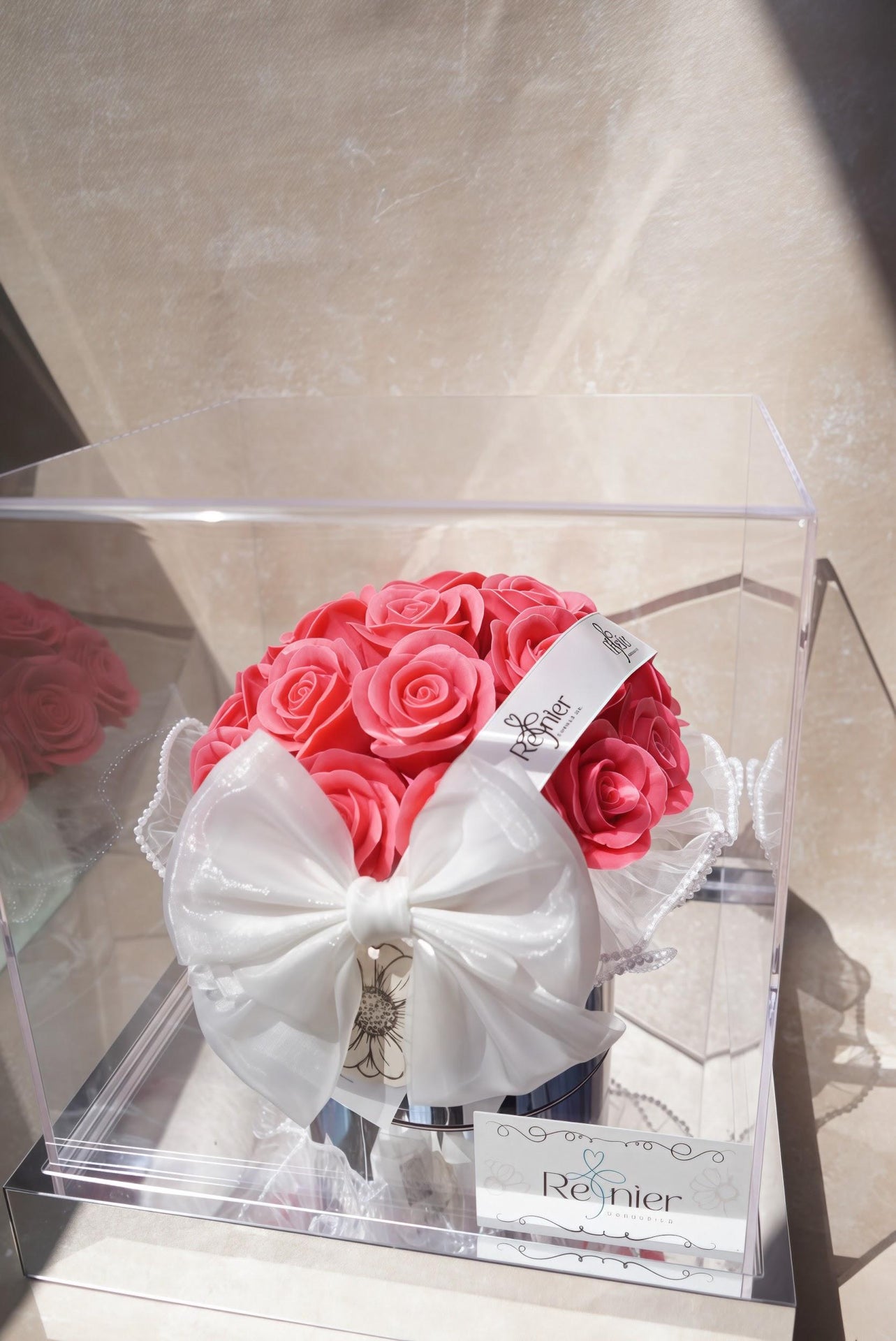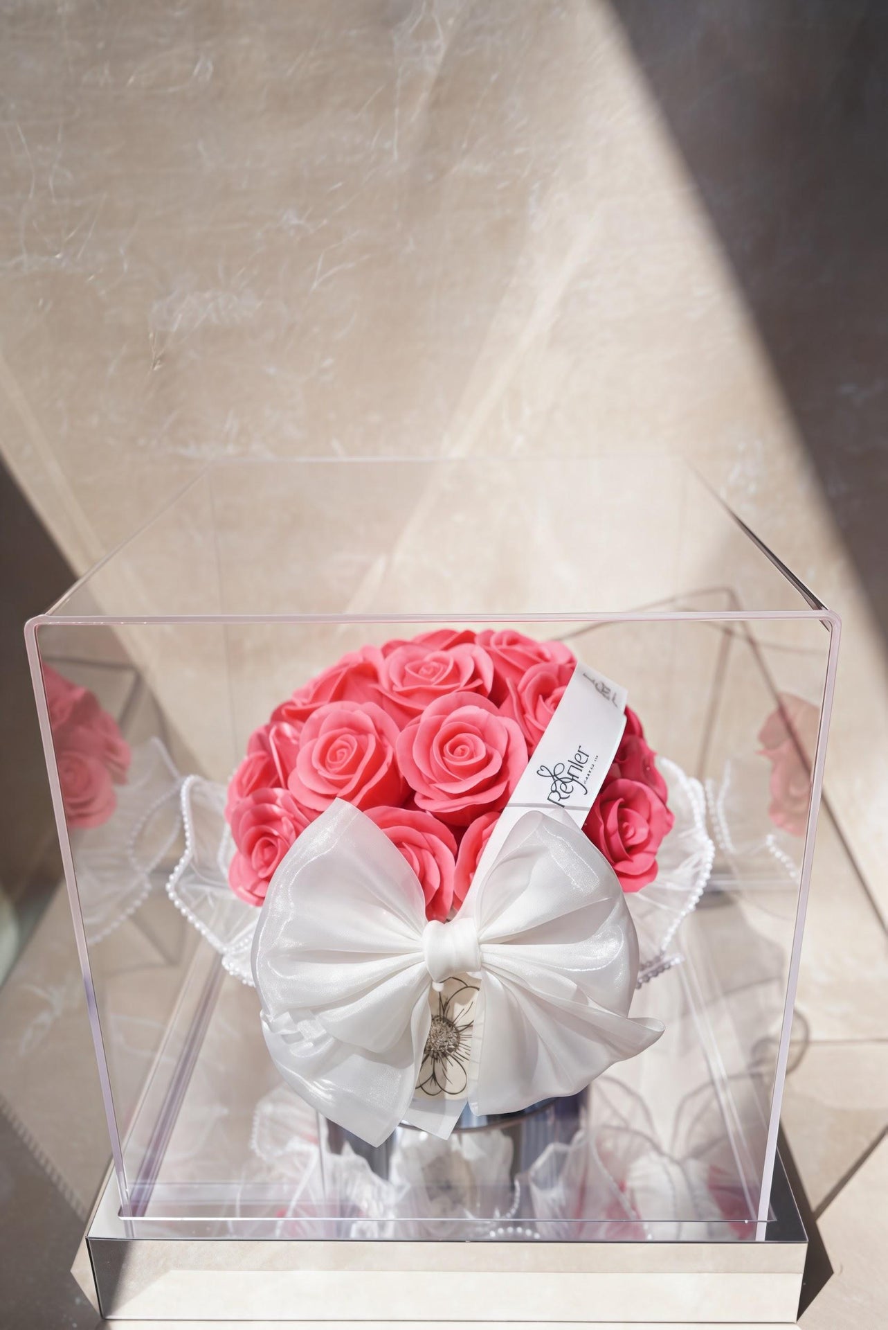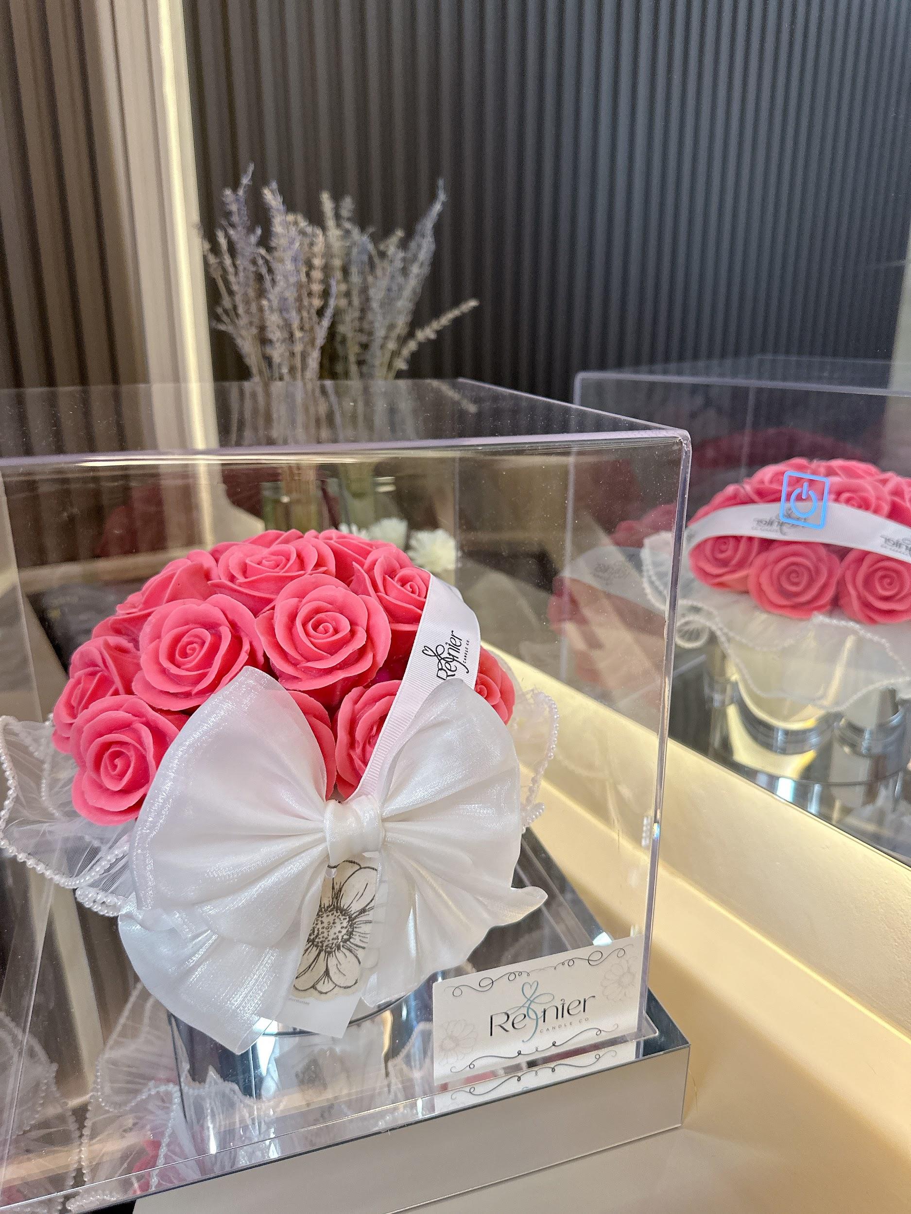 · 以玫瑰花為核心,象徵愛意的熱烈與純粹· 全手工製作 ,純天然大豆蠟· 客人自訂玫瑰花顏色(最多三色)· 附送心意卡 + 包裝盒 24.5cm x 24.5cm x 26.5cm