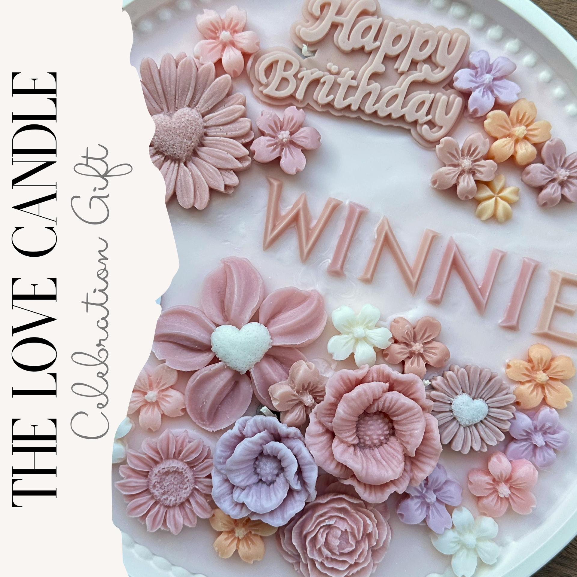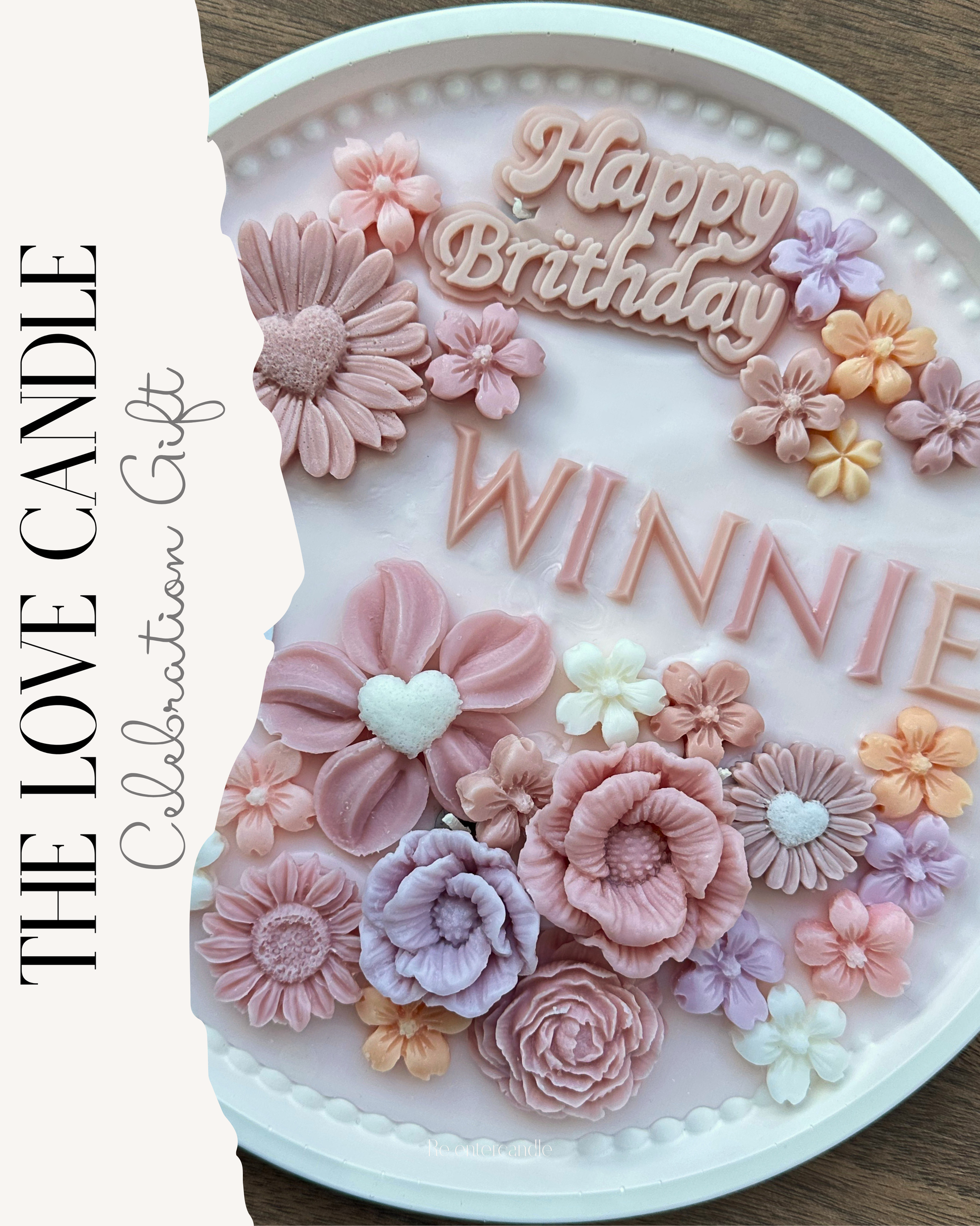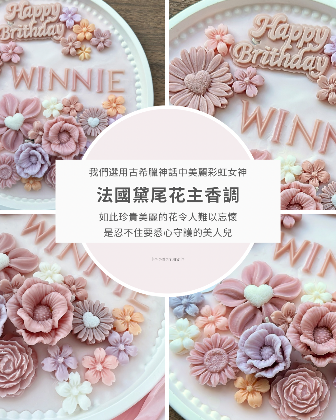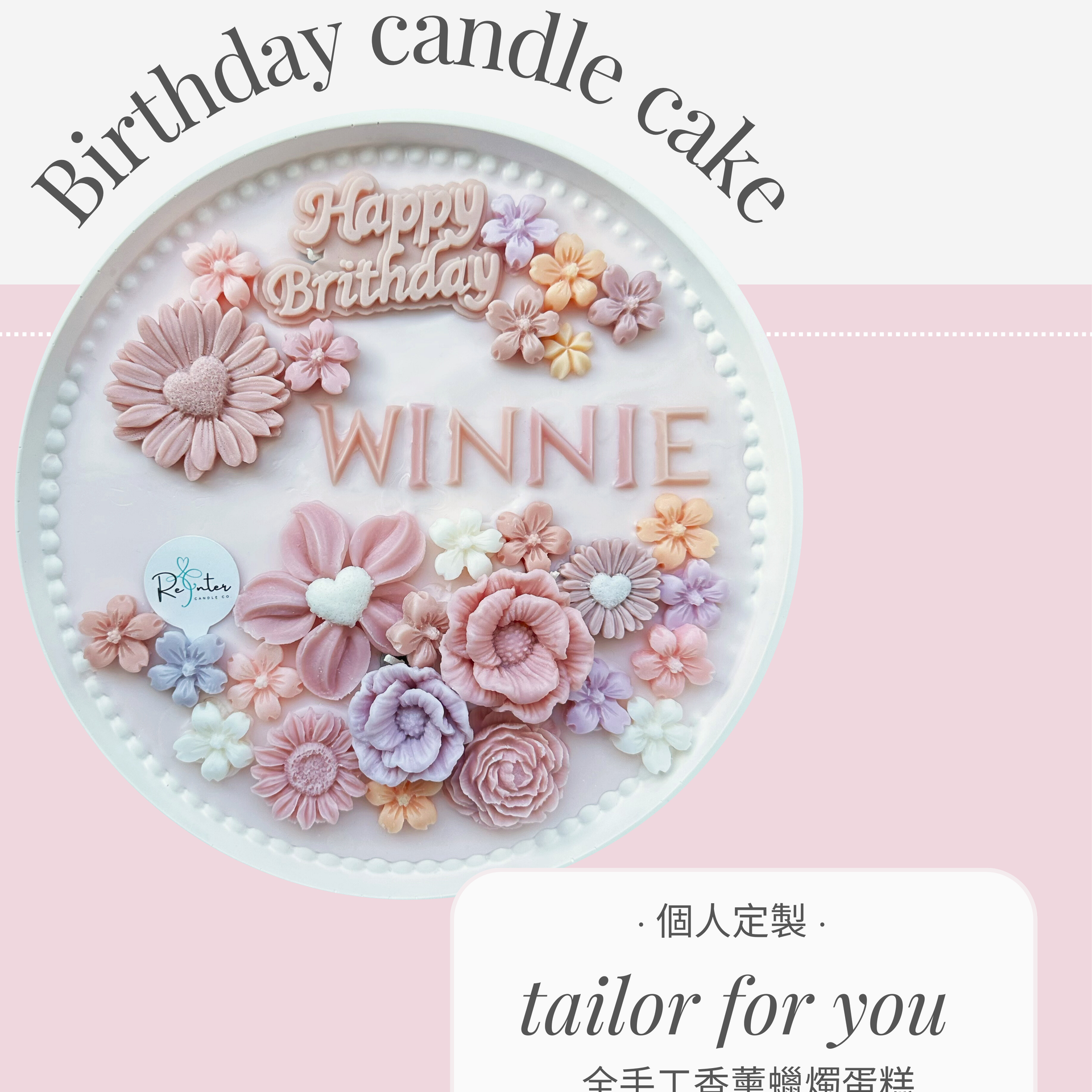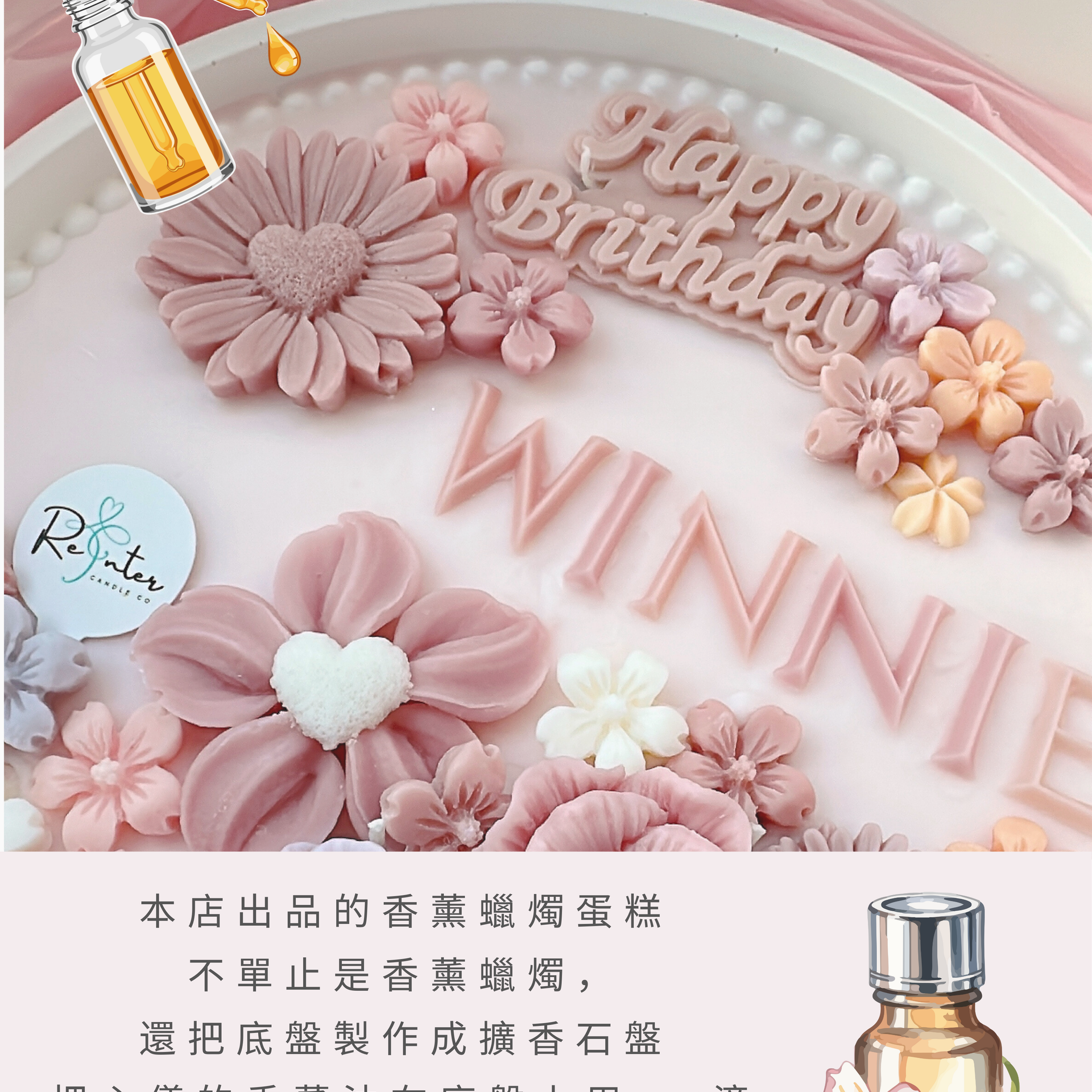 · 唯你之名香薰蠟燭蛋糕· 花香和木質香調的香氛· 全手工製作 ,純天然大豆蠟· 客人可自訂主色· 附送心意卡 + 擺設架 · 可加購 $120展示鏡盒 30cm x 10cm x 30cm