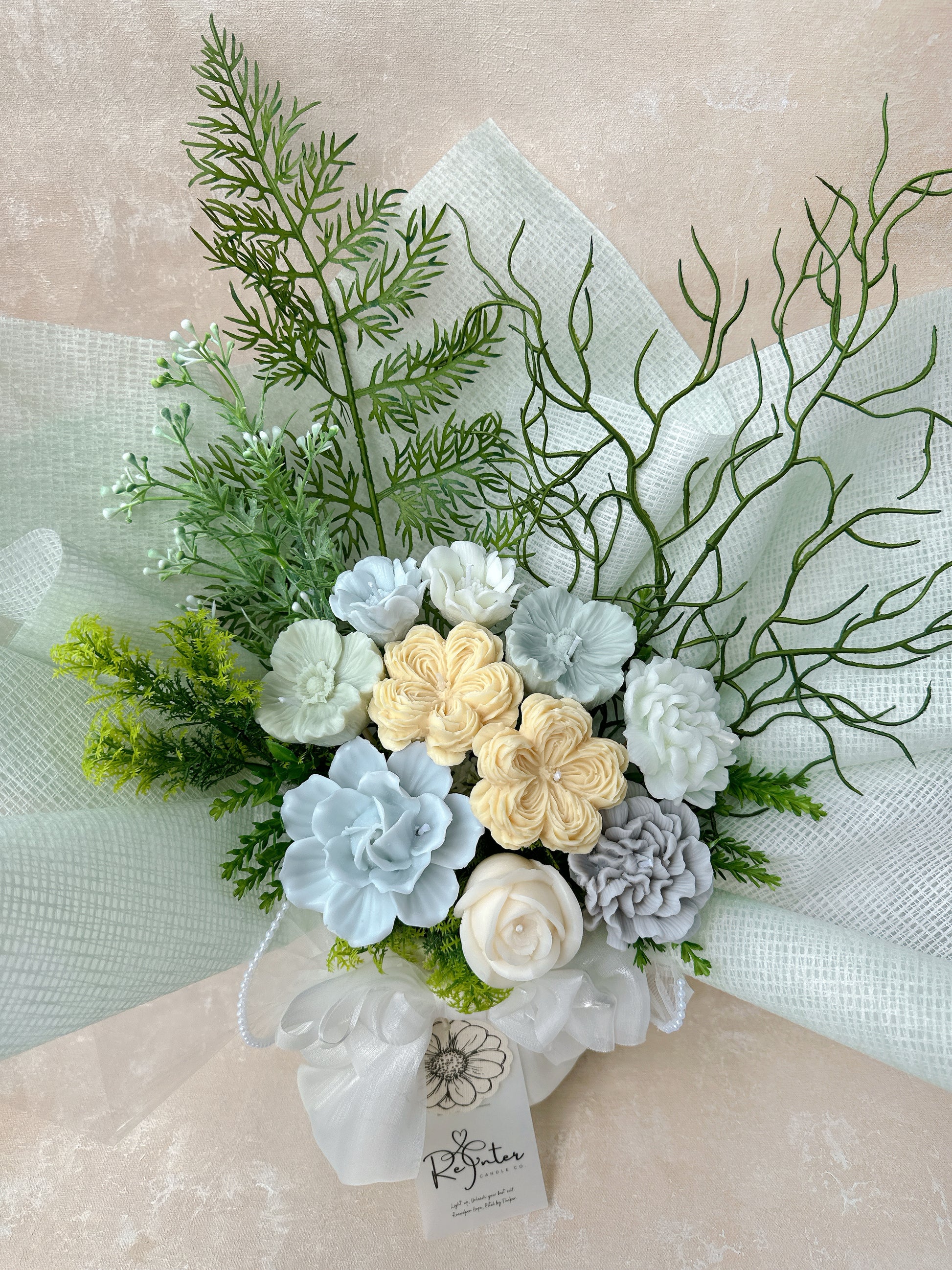 黃綠搭系香薰蠟燭花束 Romeo and Juliet